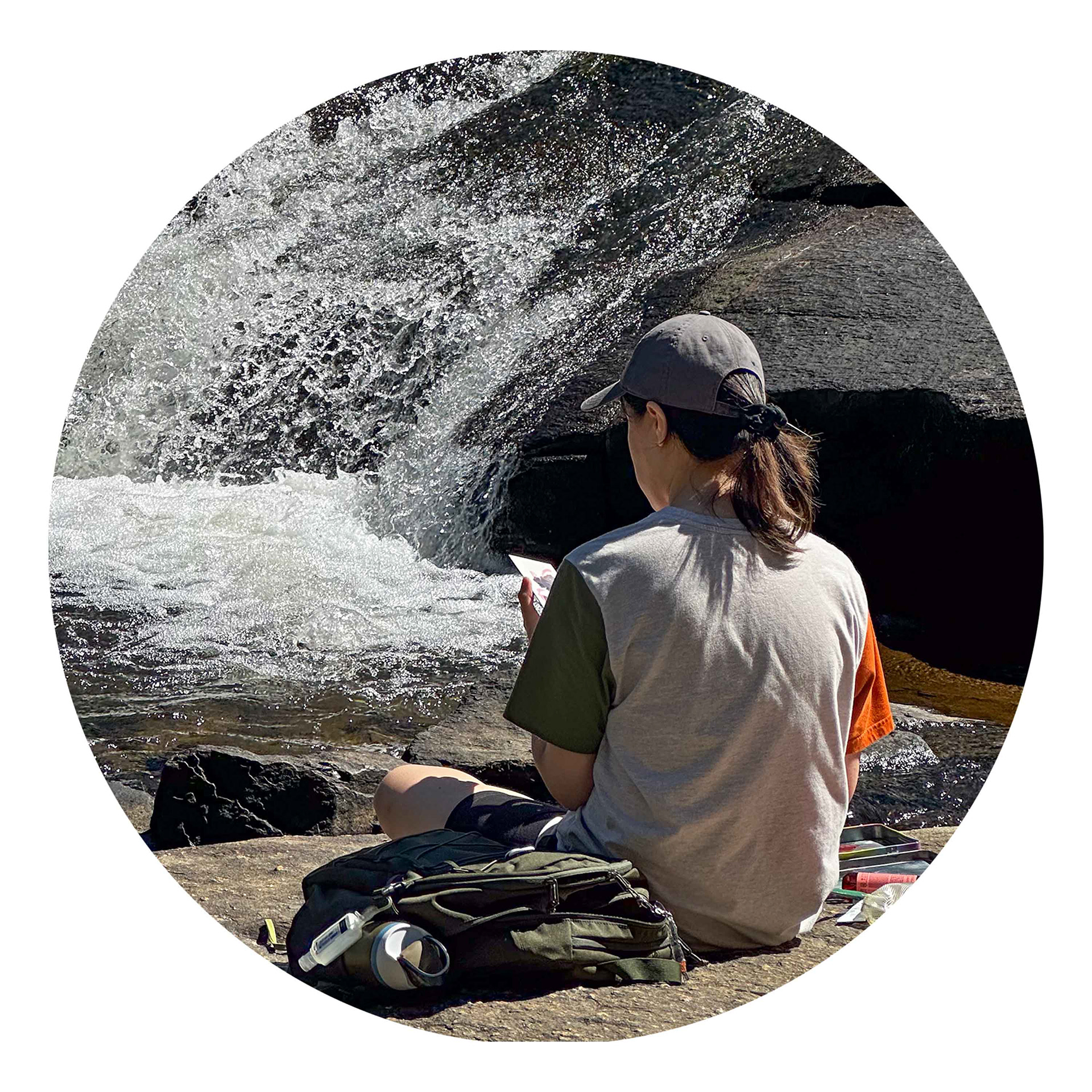 Mary often paints en plein air in gouache, capturing ephemeral light and atmosphere. Photography and sequential composition inform her storytelling, blending the language of cinematography with intimate glimpses of daily life. Her printmaking practice layers textures and imagery that echo the accumulation of memory.